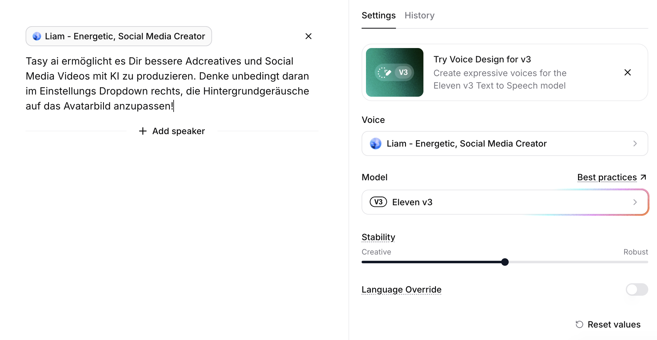 Erstelle ein Skript für dein Video, inspiriere Dich an TikToks die Viral gehen oder Ads aus der Adlibrary von bekannteren Marken in deiner Nische. Erstelle die Audio auf elevenlabs.io mit einer Stimme deiner Wahl (am Besten keine Premade Stimme, die sind mega unrealistisch).